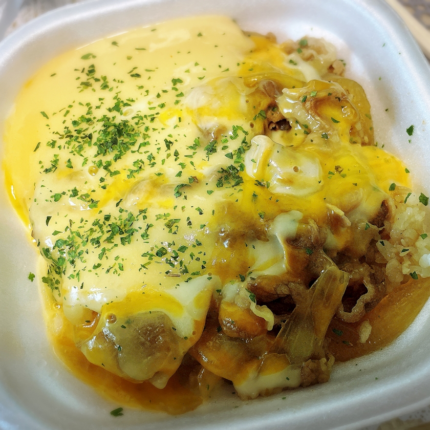 今日のお昼に出前して食べたすき家のチーズ牛丼が当たりだったと思うから見てほしい👍🏻