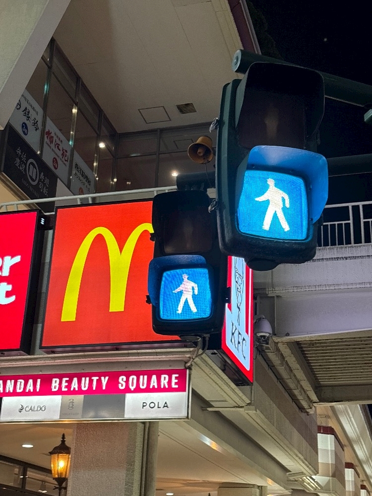 なんか普通の信号より鮮やかな青色でかわいいから写真撮ってみた♡