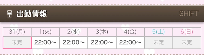 今週の出勤情報は