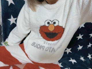 この間GETしたエルモパジャマ着て