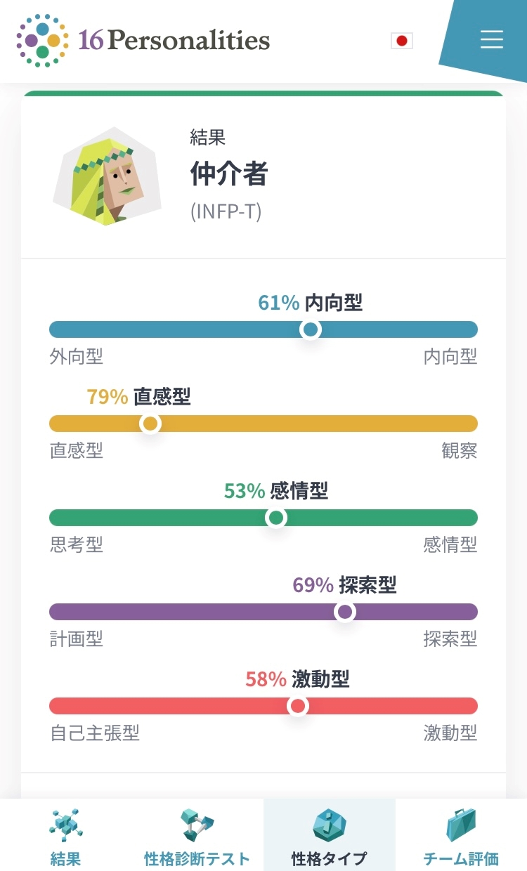 INFP-Tってやつでした!🥹🥹