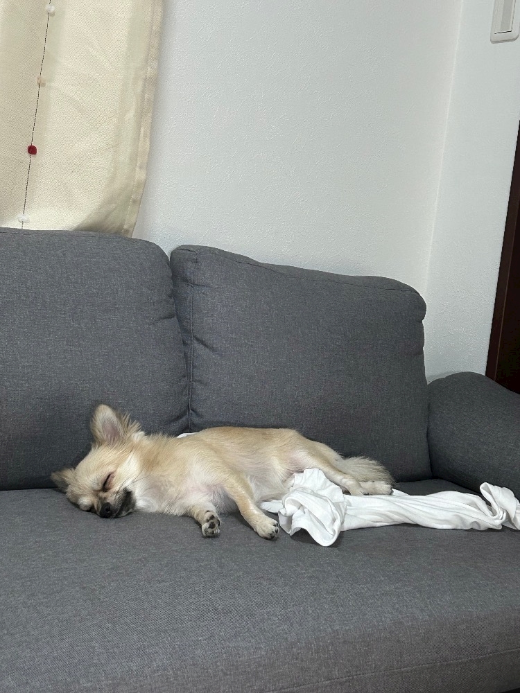 私の脱ぎ捨てた服が大好きな愛犬載せておきます
