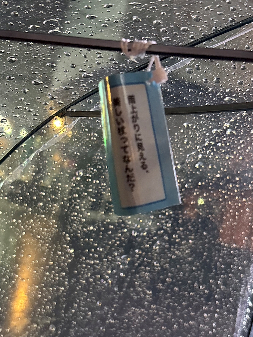 ぼやけて全然見えないけど昨日持ってた傘に着いてた変なクイズ⭐️