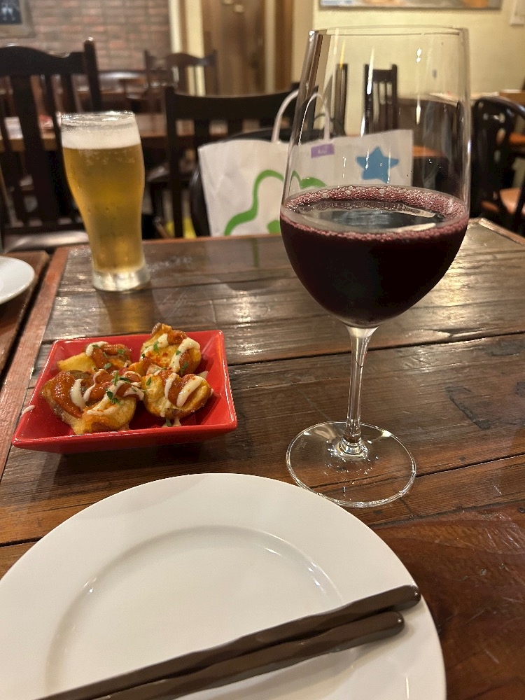 アヒージョと一緒に頼んだパンが甘くてふかふかだったの〜🥹