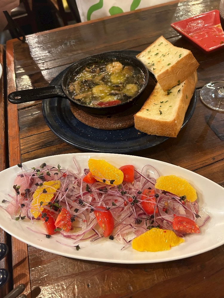 真鯛のカルパッチョと、アヒージョ🦐