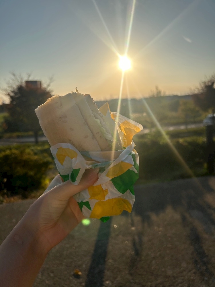 夕日と共に食べるサブウェイは最高だね‼️