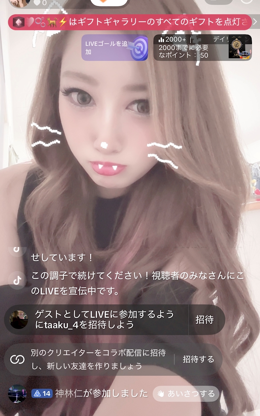 暇すぎてティックトックライブやってた時のスクショ笑