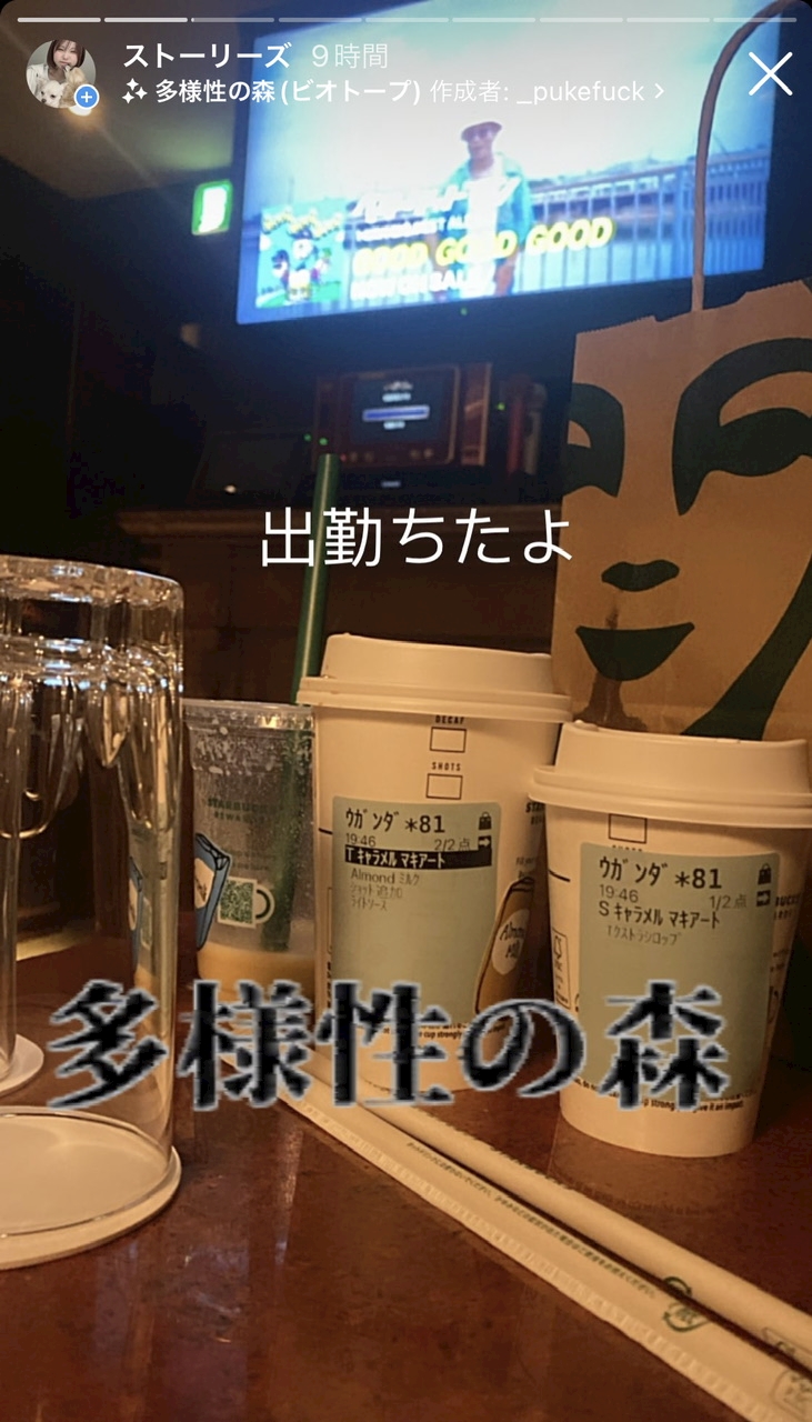 スタバを3個抱きしめて店合流出勤
