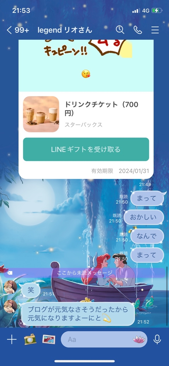 スタバのギフト何枚もくれた