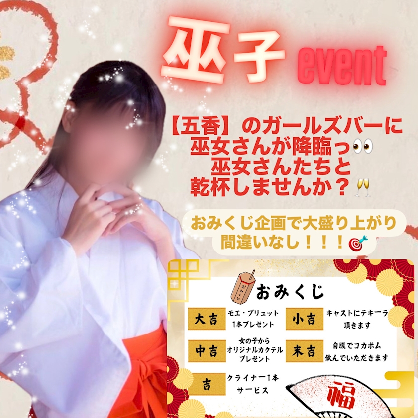 明日は【巫女イベント🎯】初のおみくじ企画もあるから個人的にも楽しみなんだけどまだおみくじ引きに行ってないから大吉ほしい - かおり - BAR 善 - 五香のガールズバー