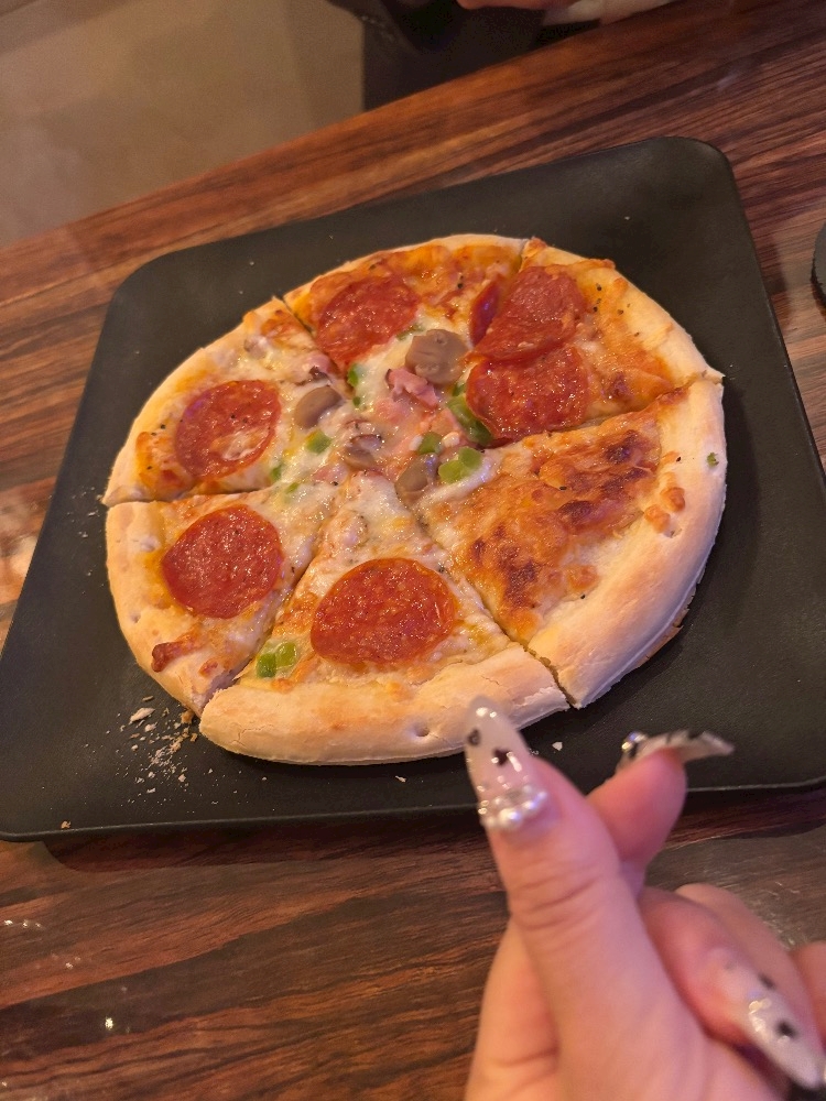 お店のピザ、ふわっふわで