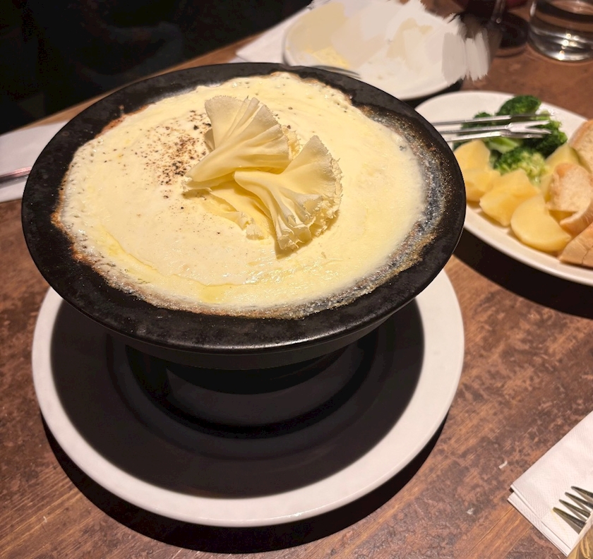 美味しいチーズフォンデュを食べながら