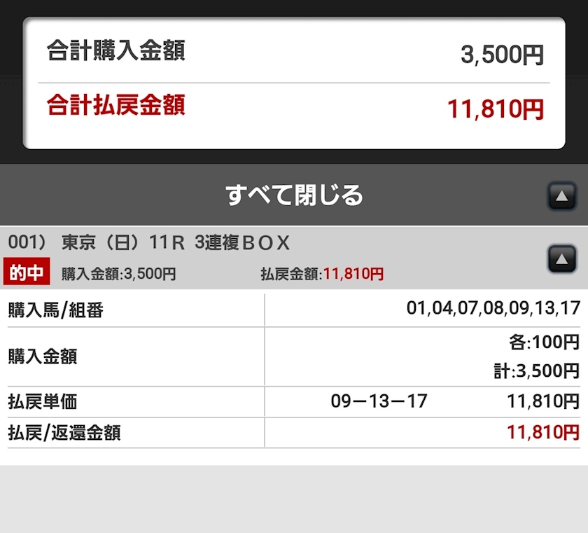 久しぶりの万馬券です。