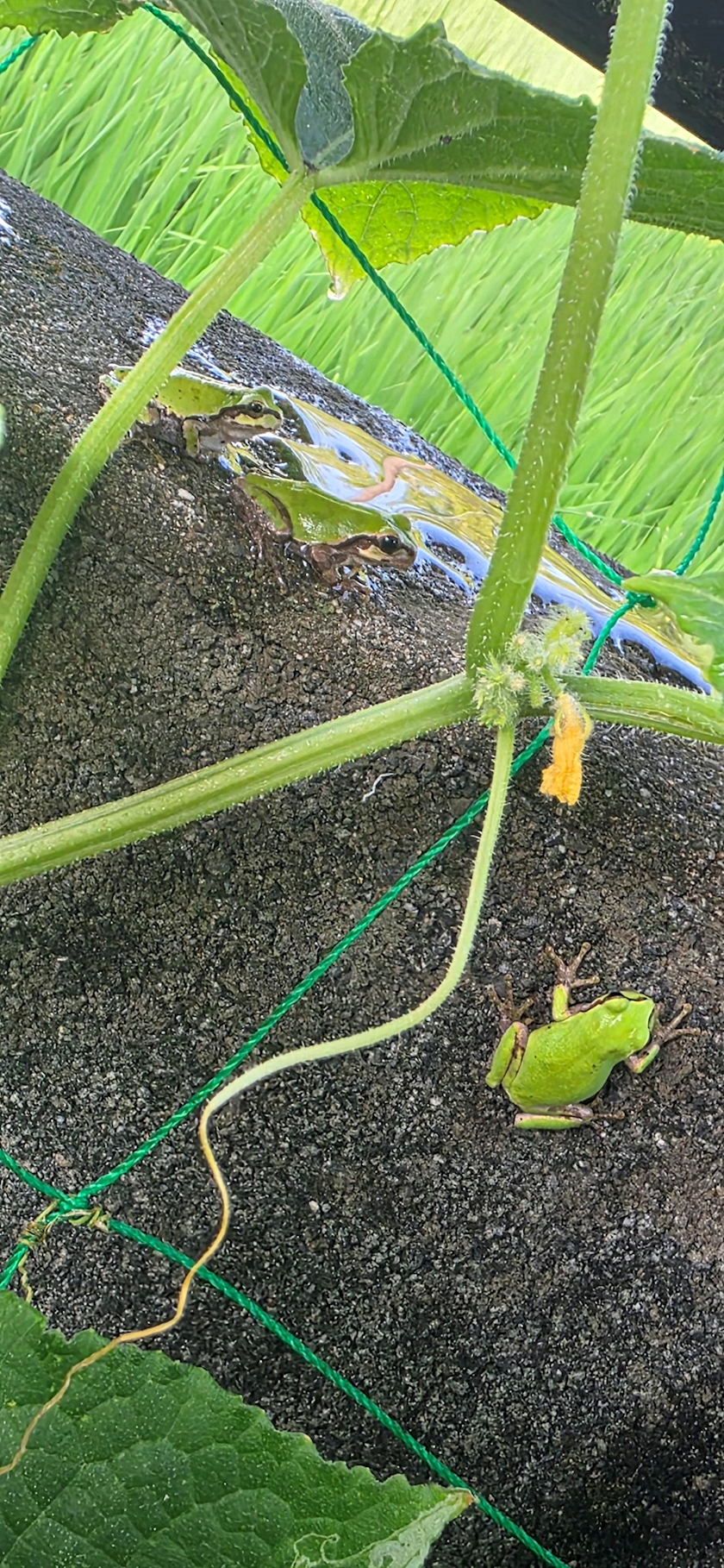 お庭にカエルがたくさんいて