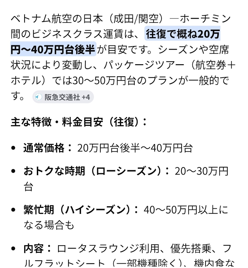 絶対ベトナム航空のビジネスクラスのがお得!
