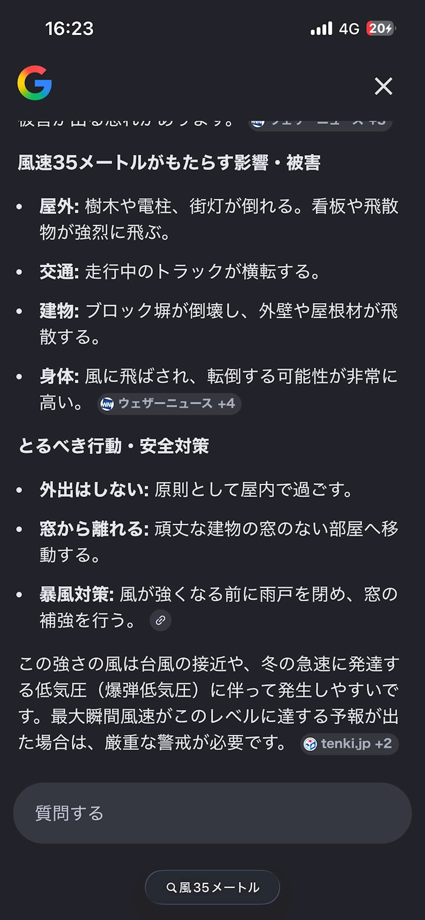 8時くらいに風35㌔って。