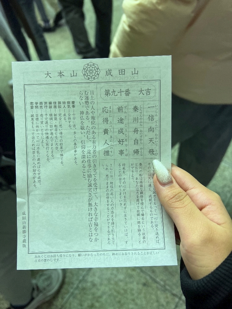 成田山でおみくじ引いたら大吉だったの✨