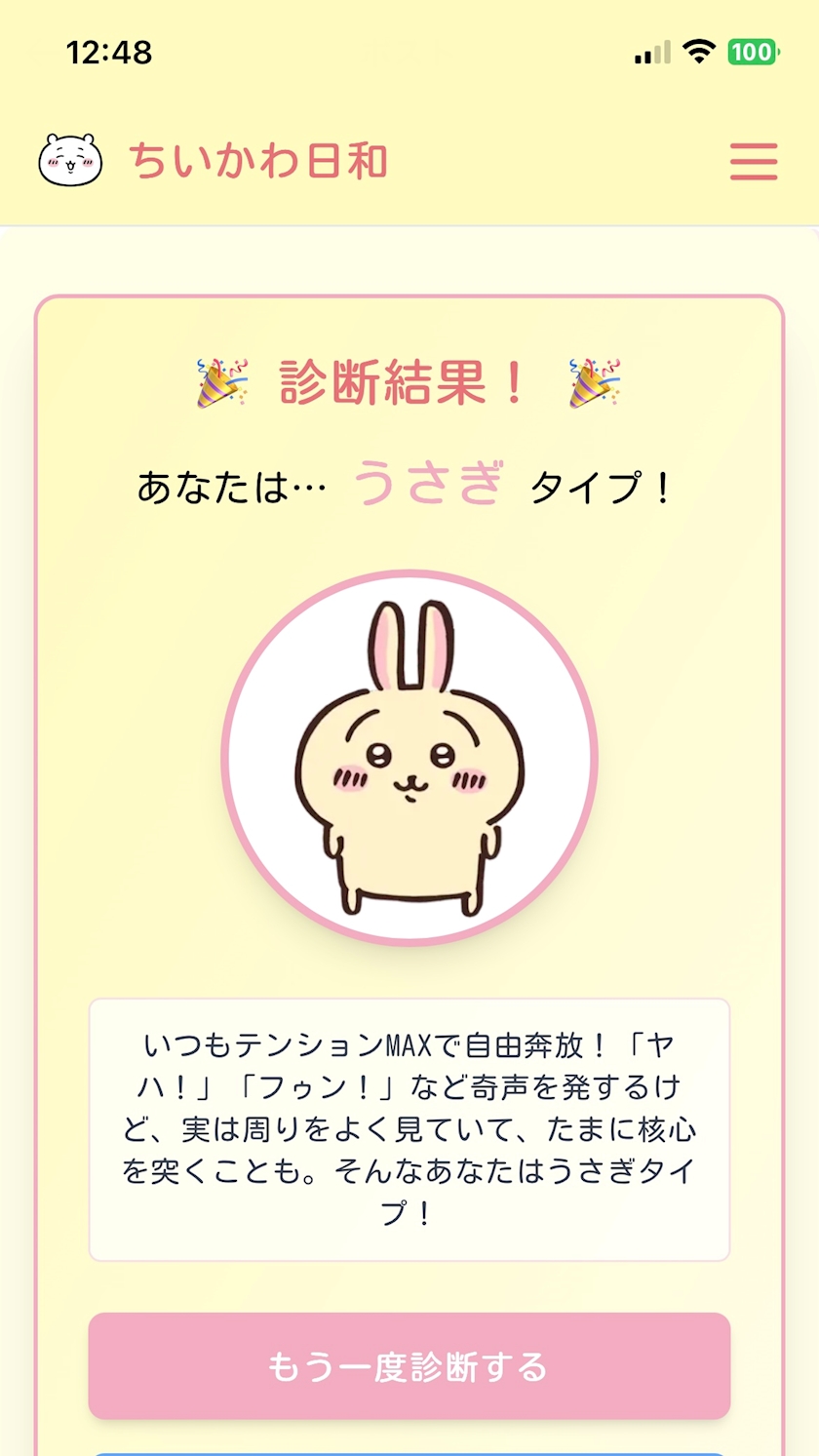 ちいかわの診断があったのでやってみました🐱🩵