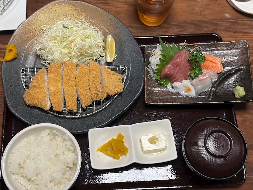 とんかつもお刺身も食べれて