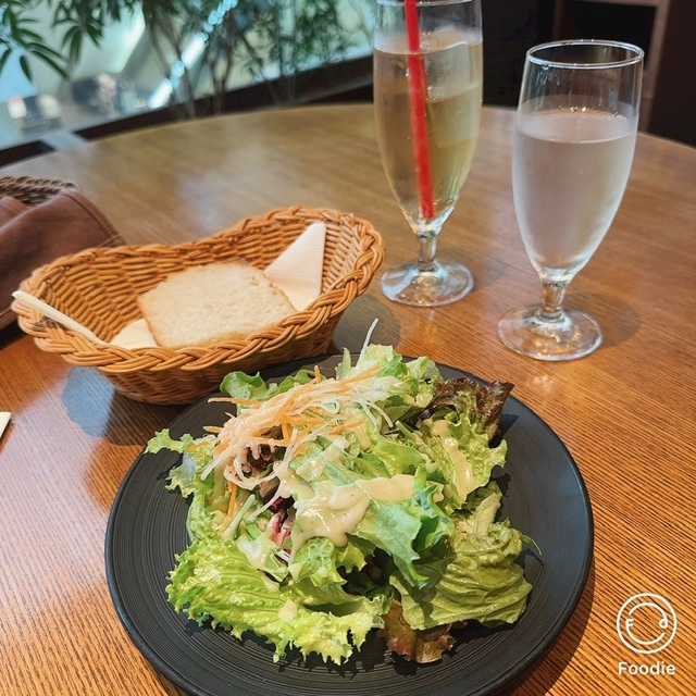 パン、サラダ、デザートでてきて