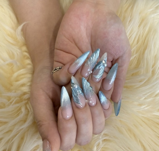 水色のマグネットネイルでキラキラ💫💫