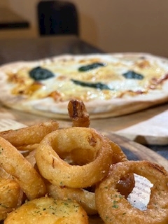 ピザと揚げ物オードブルとシャンパンで