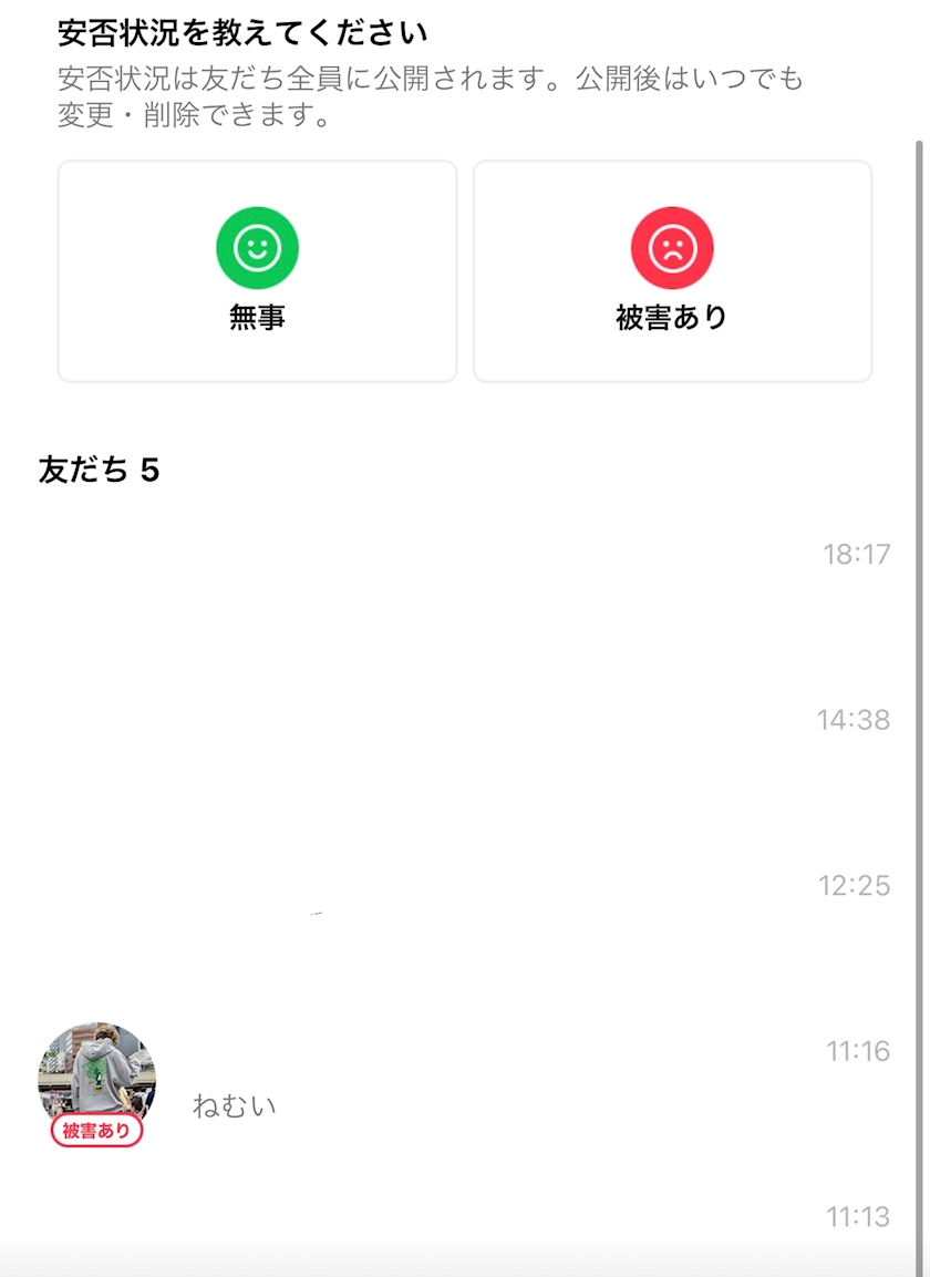 そしてLINEの安否確認