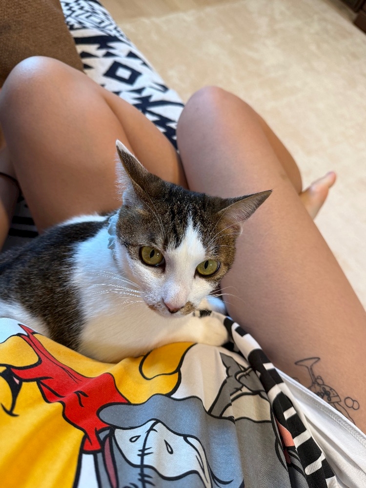 いつも膝の上嫌がるのに珍しく乗ってきた写真💛