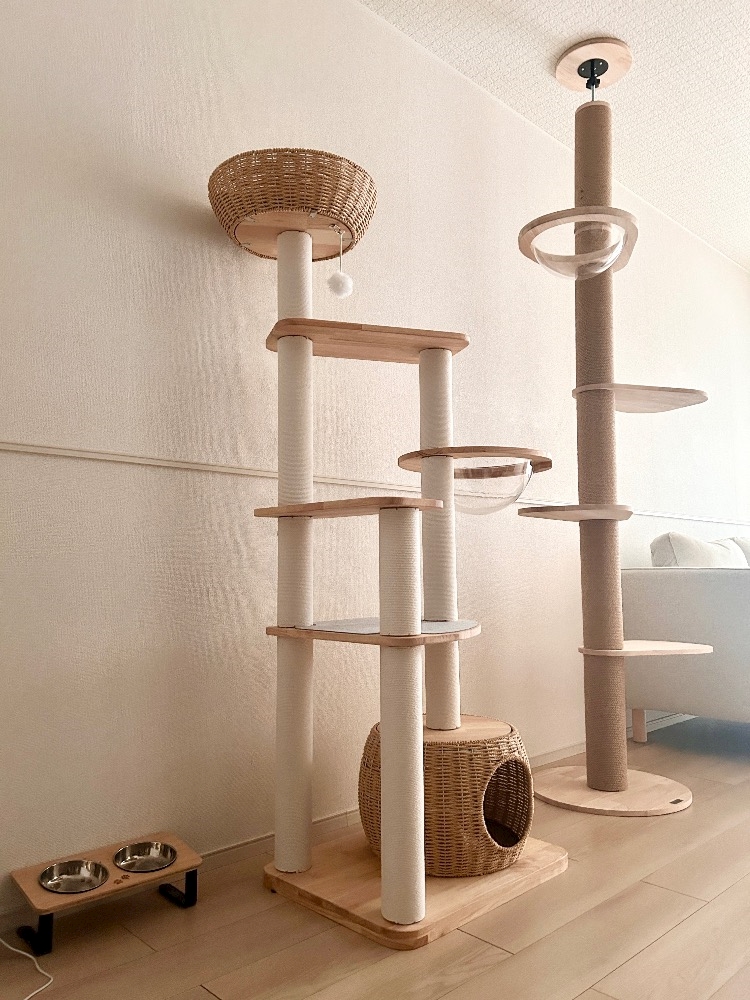 にゃんこ二人いて抜け毛も2倍なので、布のものだとすぐ汚れます ちょっと高級だったけど木製のタワーにしたので長持ちするといいな
