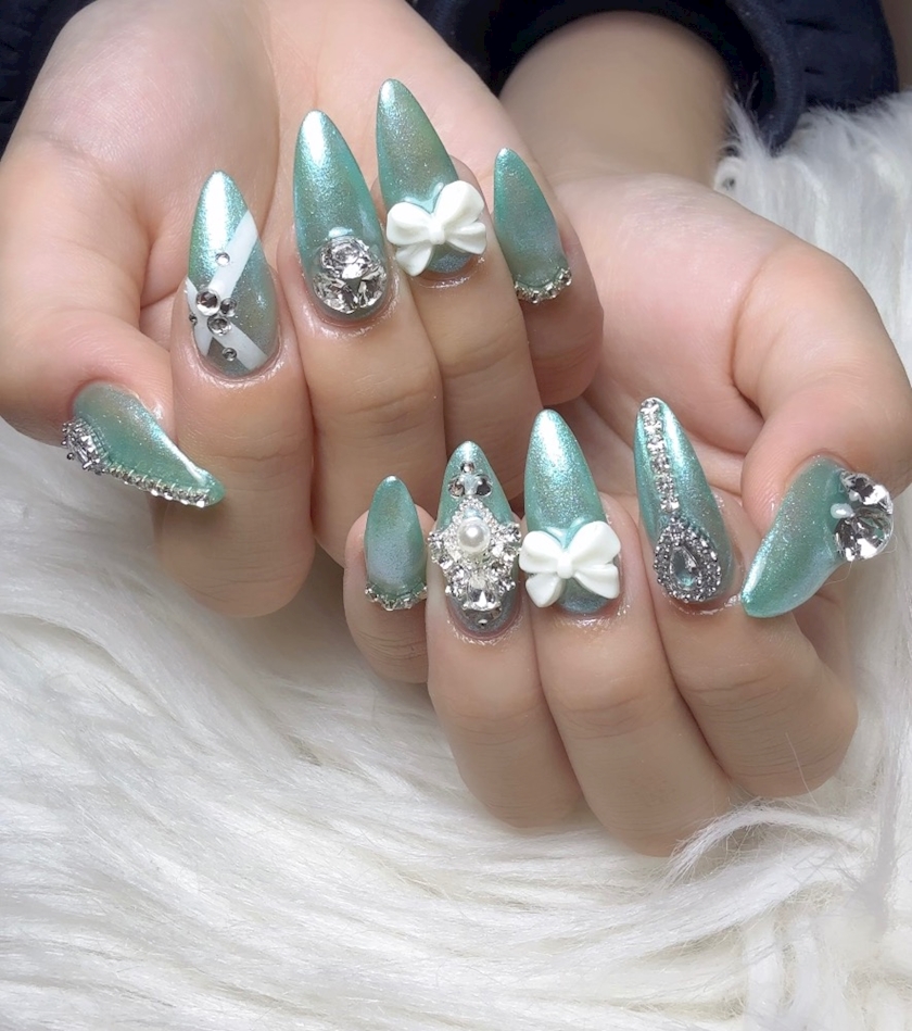 ※今年のラッキーカラーはエメラルドグリーンとネイビーなので持ち物もネイルもラッキーカラーで攻めてます