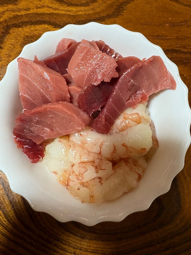 ららぽのお魚屋さんで赤エビと中トロかって夜な夜な食べた🤣