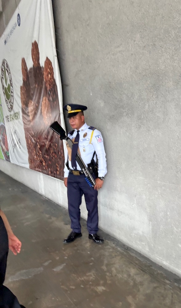 銃を持った警備員が