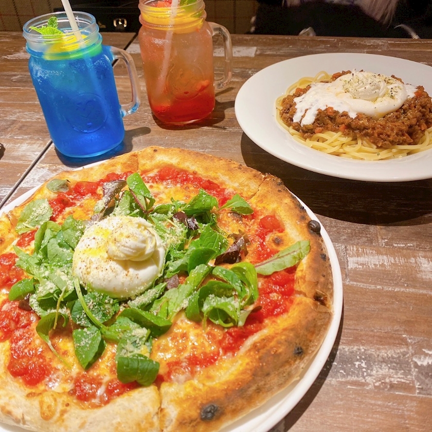 ボロネーゼもピザも頼んで