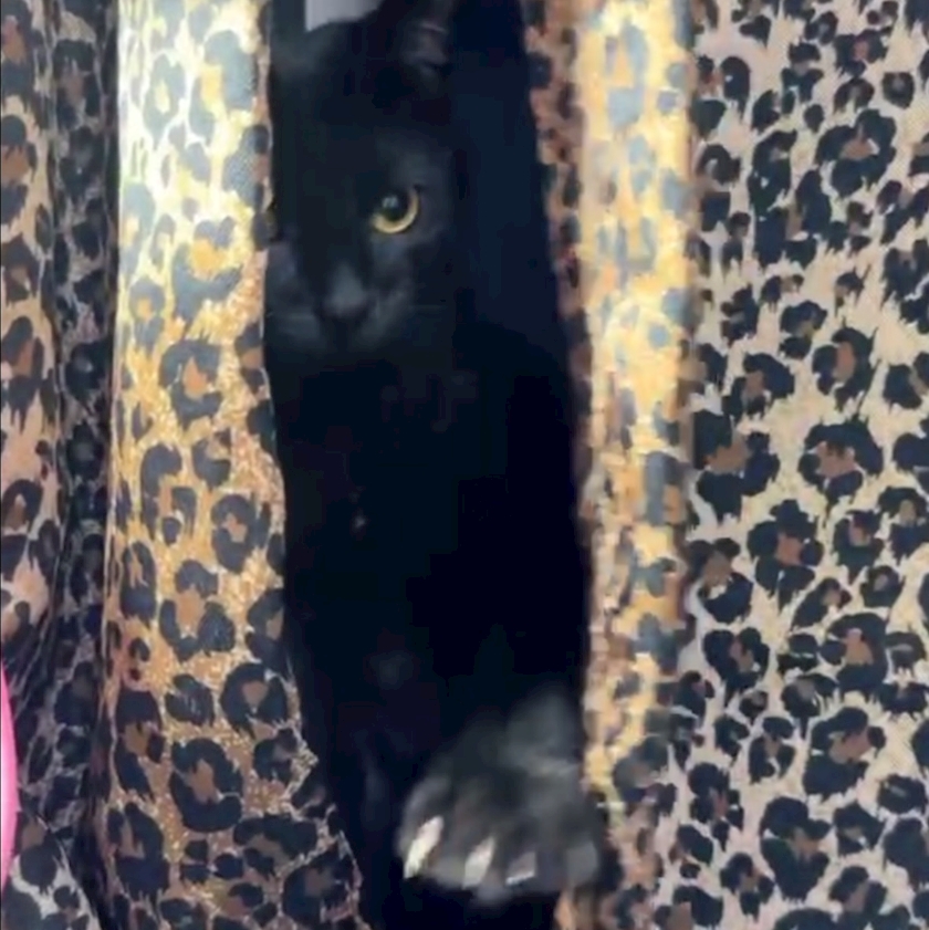 カーテンから覗き込んでて
