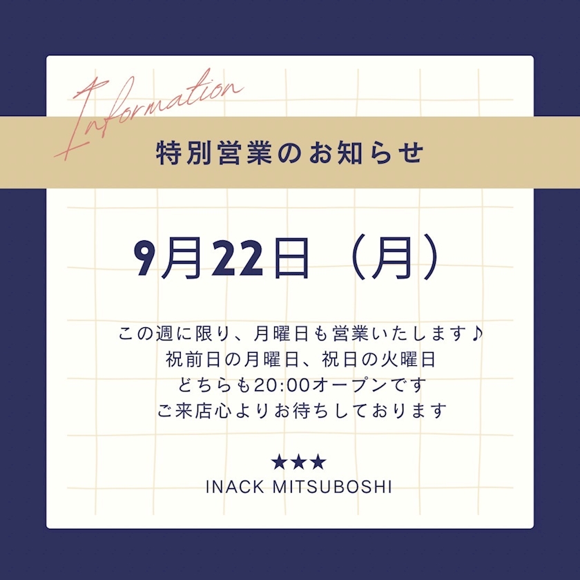 いつも日月休みの三つ星ですが