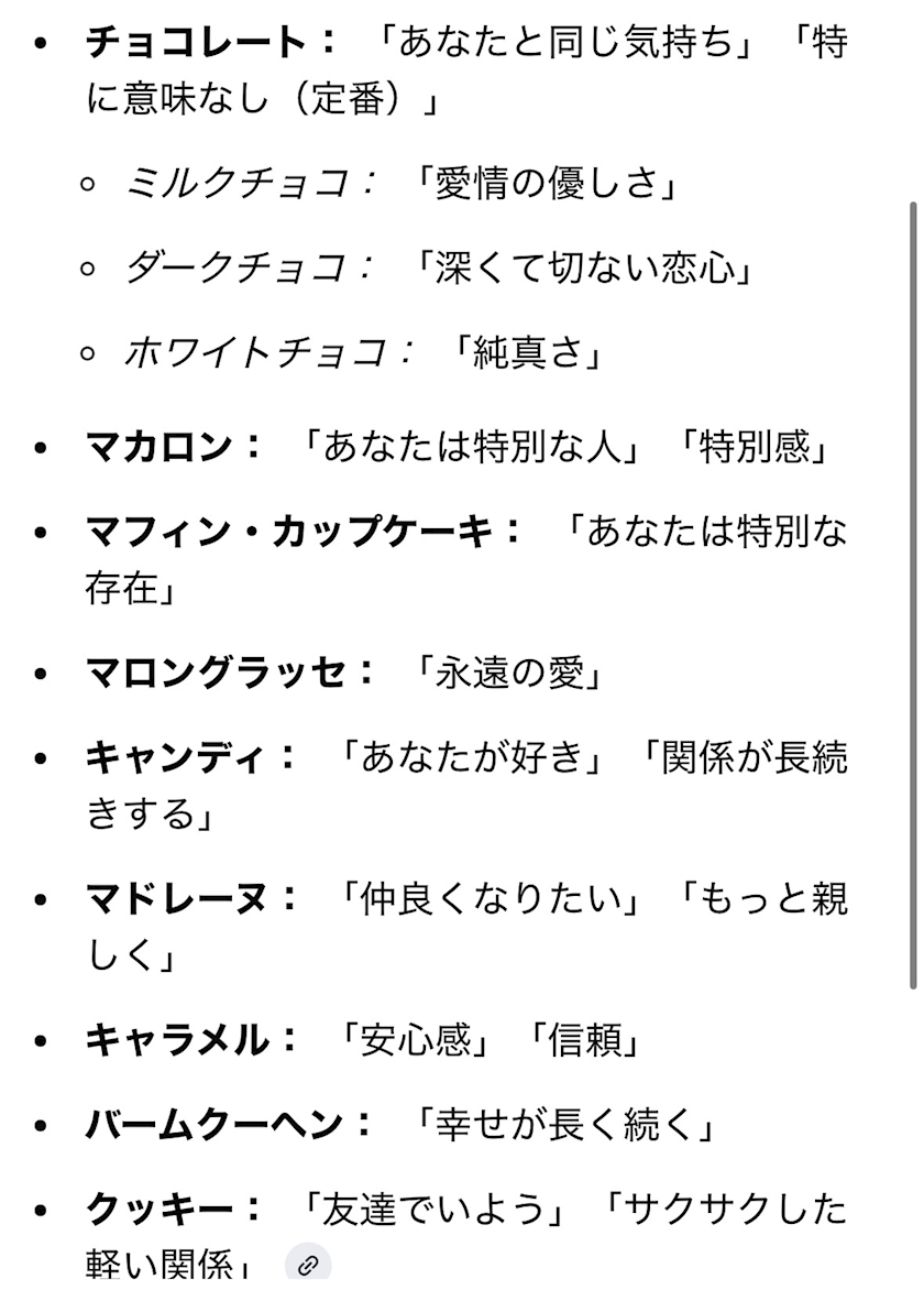 それぞれのお菓子に