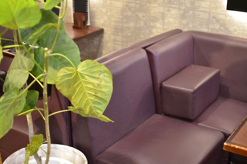 ブラウンを基調にした落ち着きのあるムードの店内にはテーブル席が6卓ほど。隣席が気になりづらいレイアウトにして、お気に入りの女の子とゆったりと過ごせるように配慮しました。