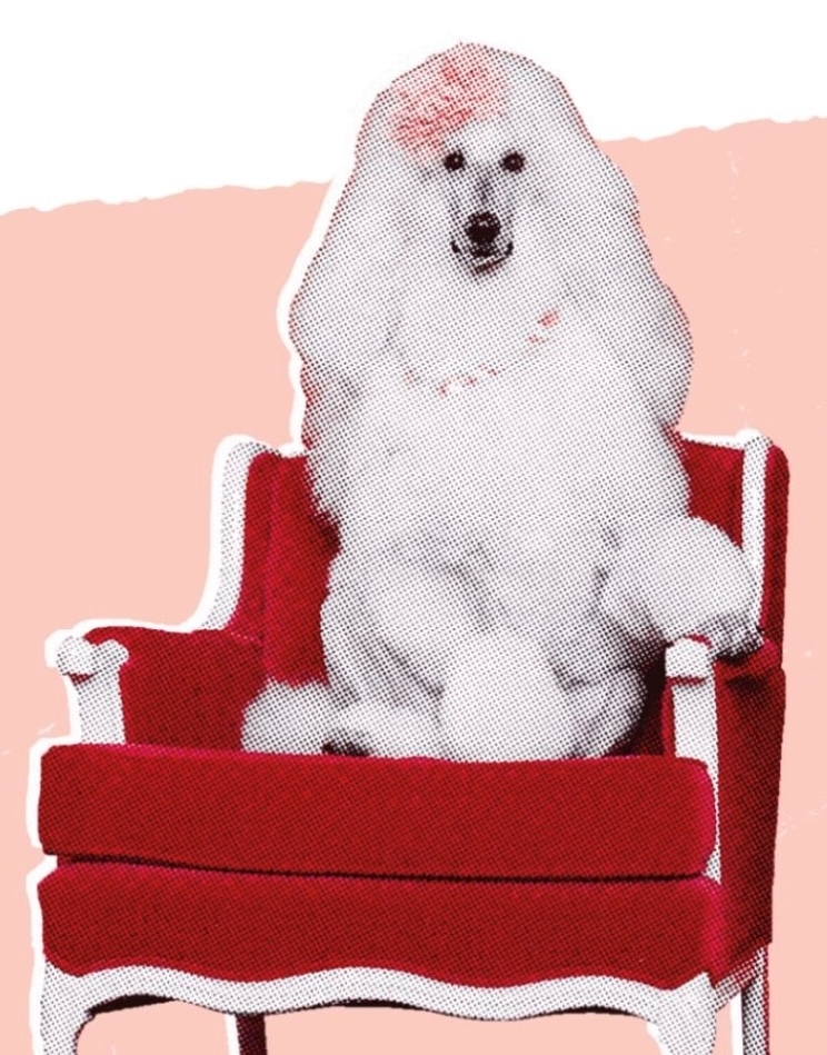 椅子に座ったプードルの写真をご覧ください』