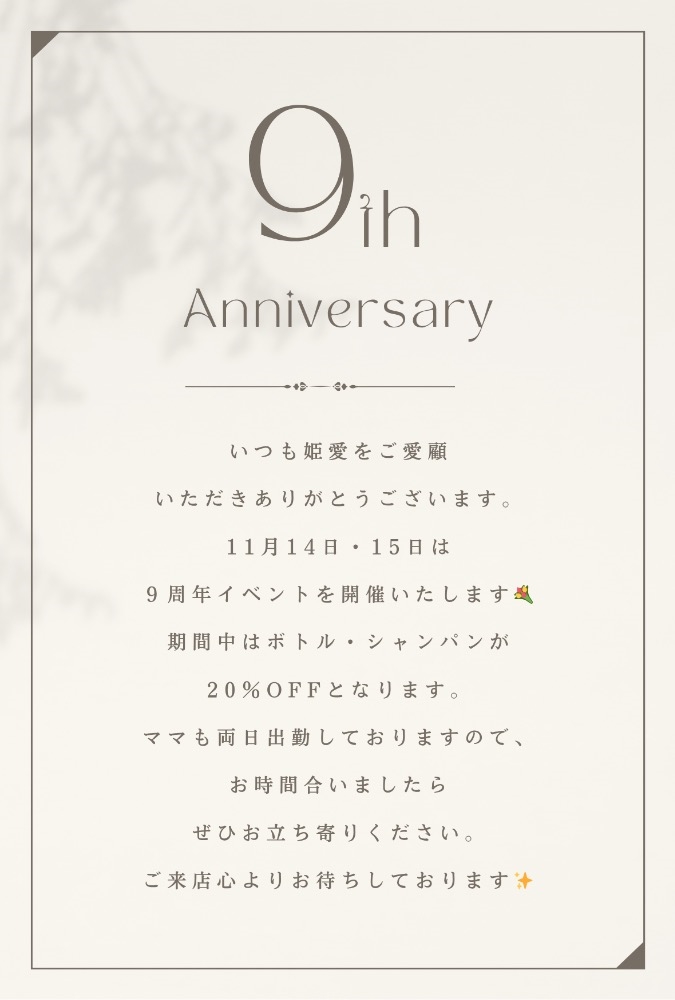 9周年イベントのお知らせです👸🍀