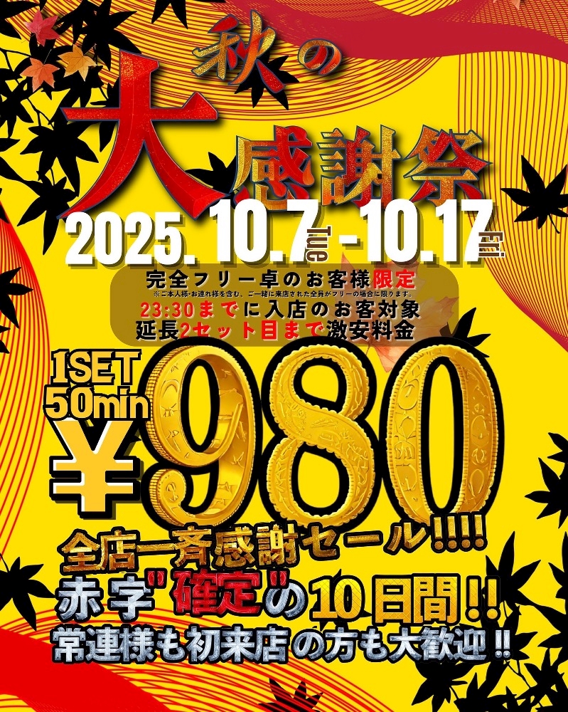 😂1set980円ってマ!?秋のイベントきた~🍁✨ - ゆり - CLUB ZESSICA・ゼシカ - 木更津のキャバクラ