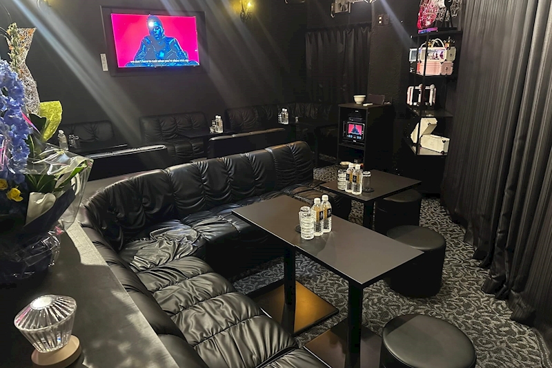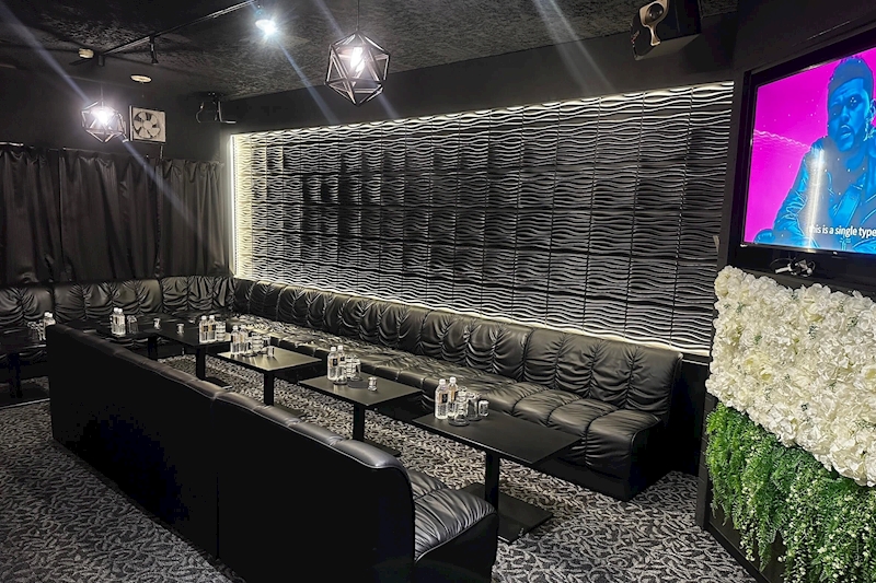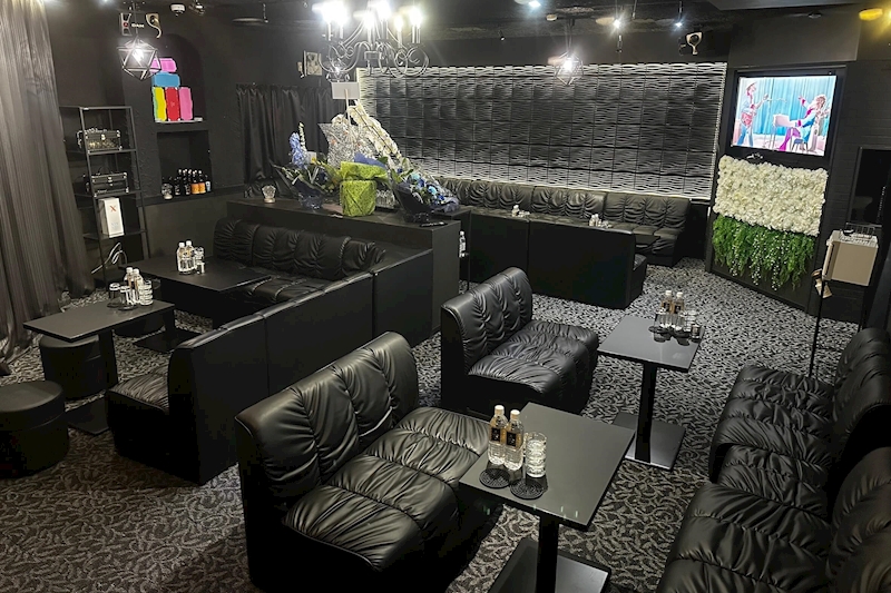 建物を2Fへと上がり扉をあけると、黒を基調としたシックな雰囲気のカッコいいフロアが登場します!大きなカウンターが入るくらい店内はひろびろとしていて、お隣と腕が当たりそう…とかそんなプチストレスとはいっさい無縁。周りの視線も気にならず女の子との会話にしっかり集中できちゃう!2人だけのあまーい時間を過ごしたいって方にはオススメのラウンジですよ!