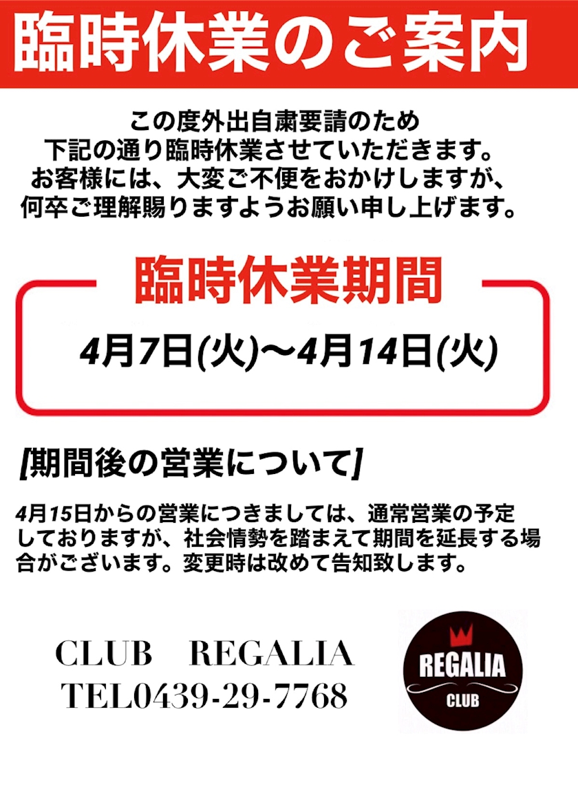 平素よりCLUB REGALIAをご利用頂き誠に有難うございます。