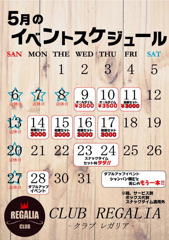 ⭐️5月9.10にはオールタイム 3500円 イベント