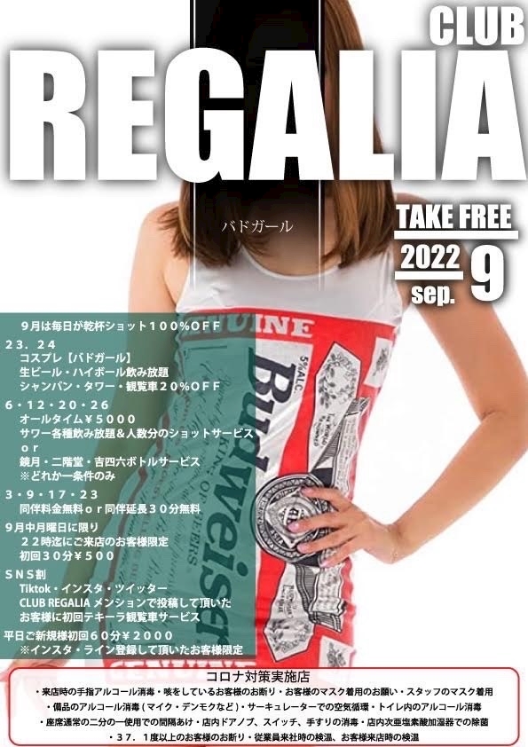 9月もレガリアでのみましょ😍