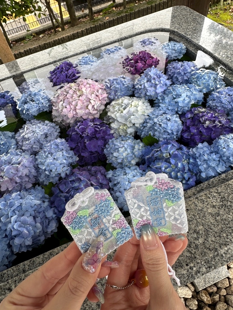 期間限定の紫陽花お守り買っておみくじ引いて