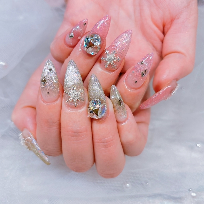 先月に引き続き雪の結晶ネイル❄️