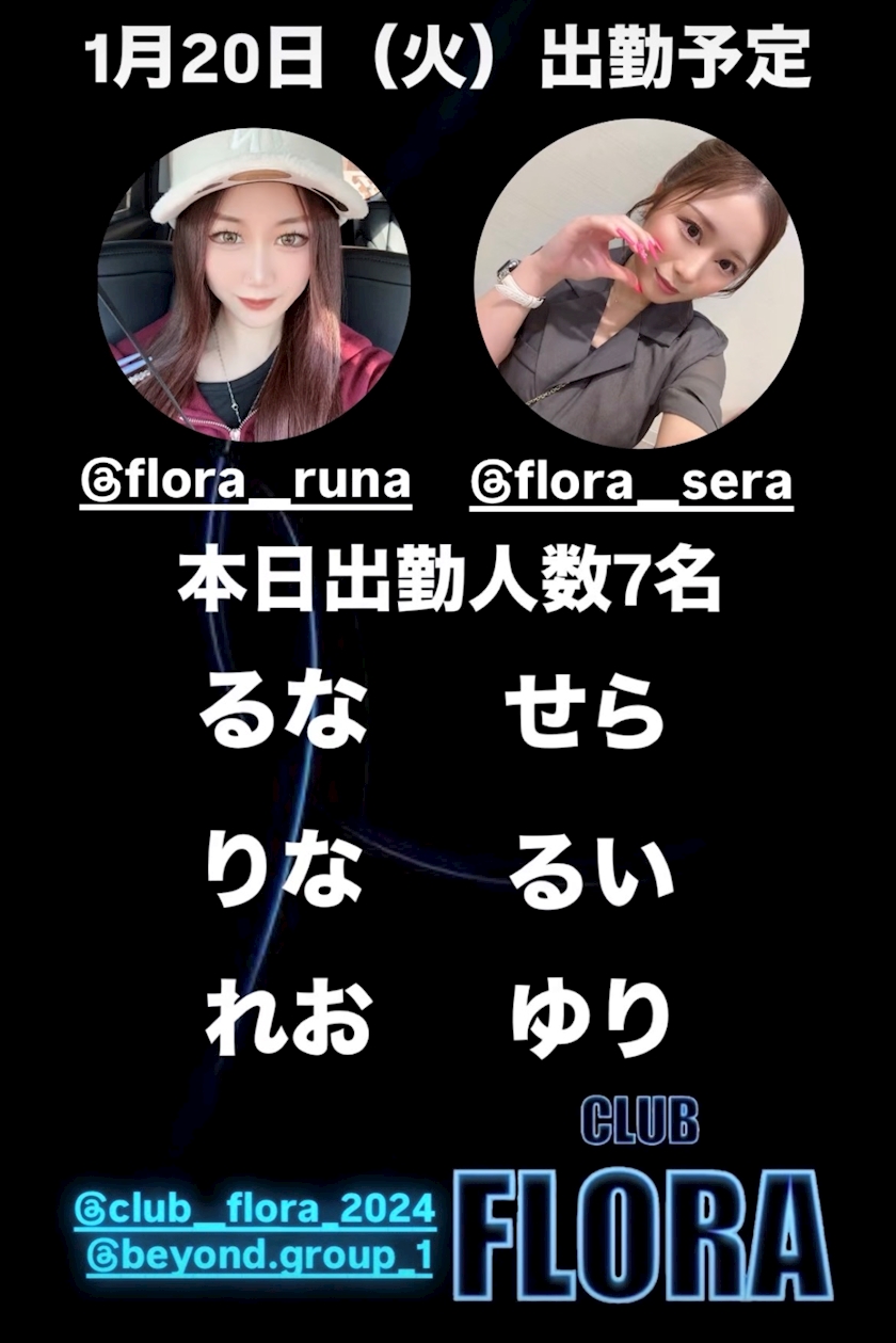 1月20日(火)出勤予定🗓️ - スタッフ - CLUB FLORA・フローラ - 君津のキャバクラ