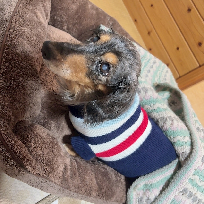 いぬがお洋服着てました🐶👗🤍💙❤️