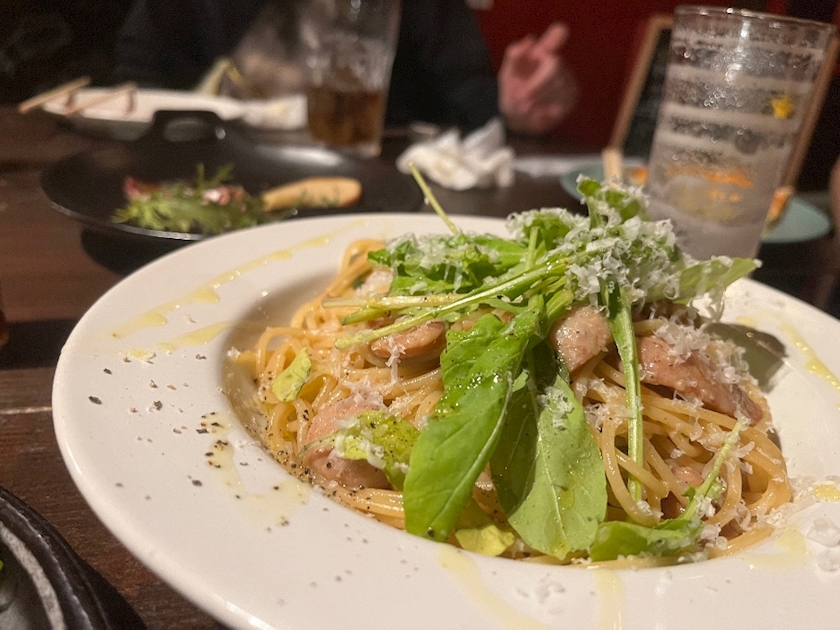 自家製ソーセージとルッコラのオイルパスタ