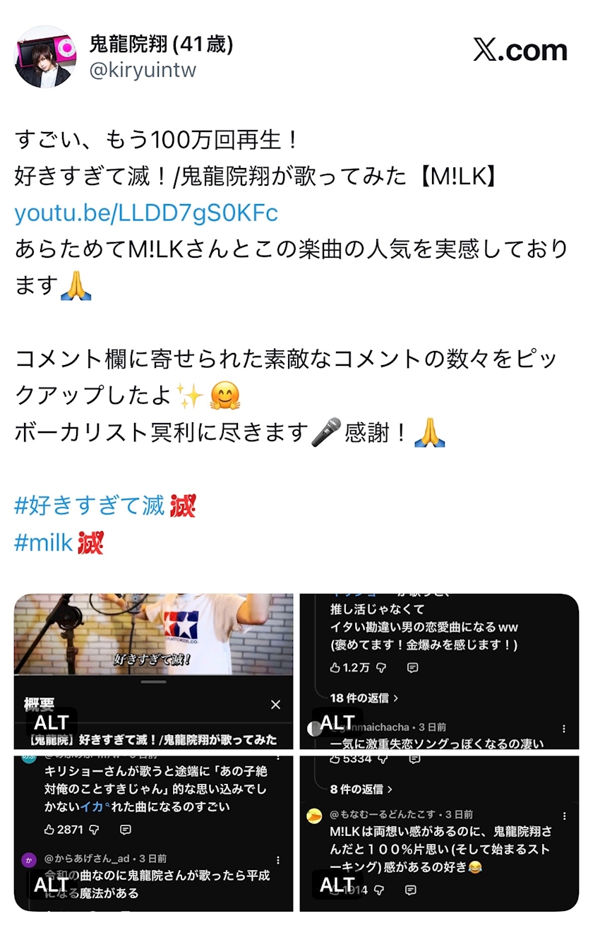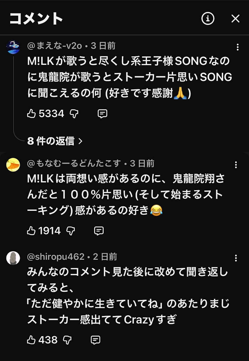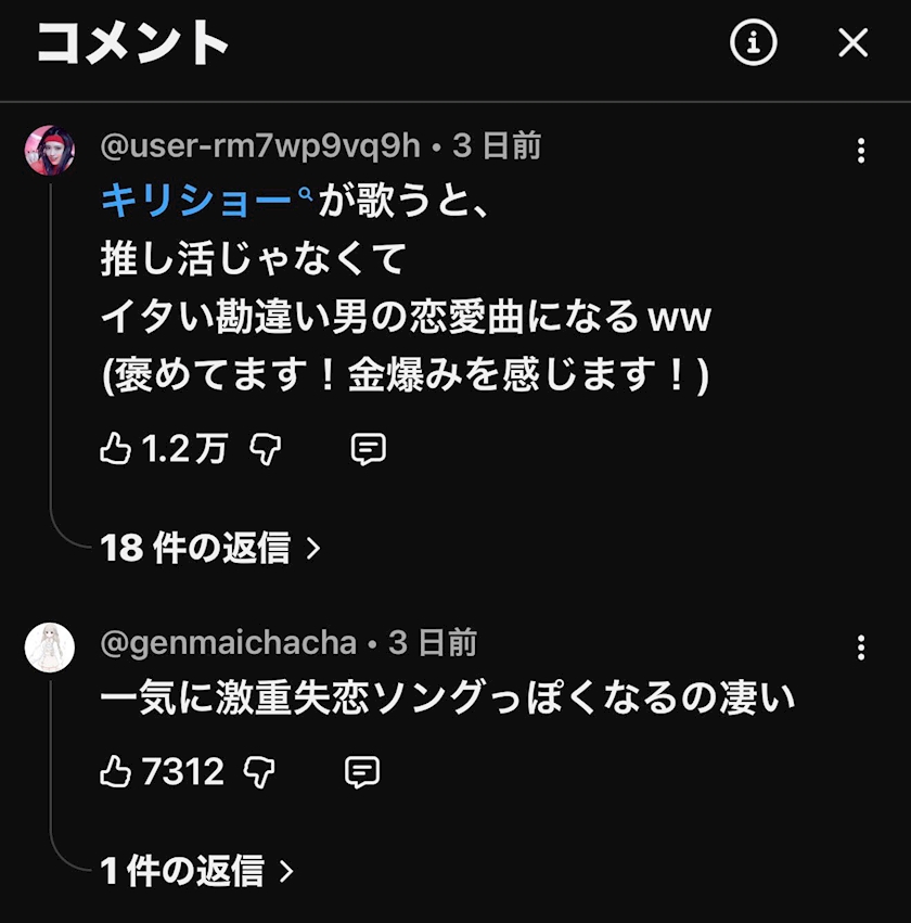 YouTubeでのコメント画像↓